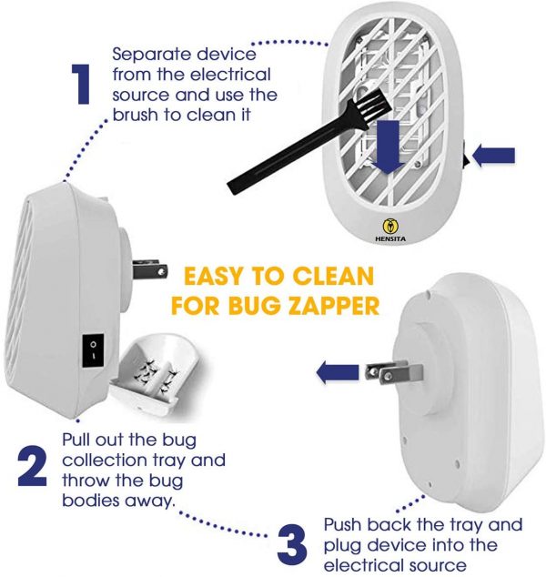 HENSITA Tueur d’insectes d’intérieur – Éliminateur d’insectes Puissant et écologique Zapper Catcher – Tueur d’insectes 2 Paquets d’insectes électriques enfichables d’intérieur (Blanc)