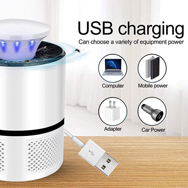 【Effectively Kill Mosquito 】USB Charged led Mosquito Controler adopts 365nm bionic violet light to enhance the attraction of mosquitoes, enabling precise mosquito trapping. Built-in powerful streamlined suction fan, generates strong vortex air flow to effectively suck mosquitoes.Mosquitoes flying at close proximity from any direction will be pulled in to the insect trapper, then they will be air-dried to death.